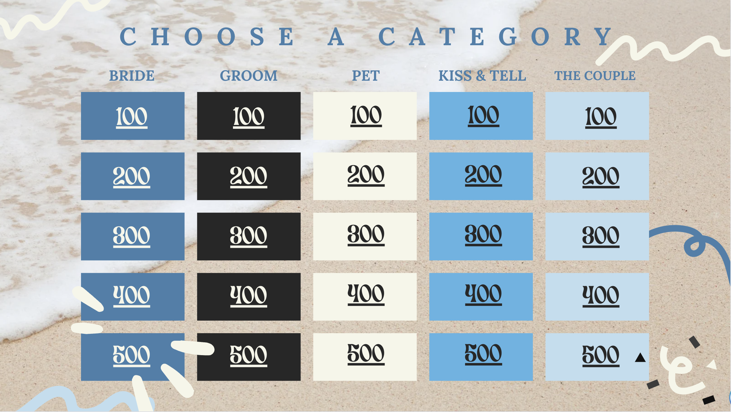 Make your 2025 or 2026 bachelorette party the toast of the coast with this elegant and fun Jeopardy game!